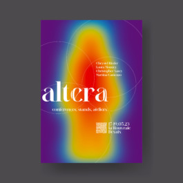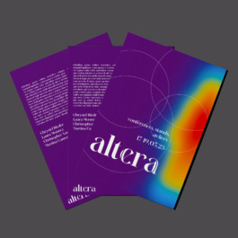 Altera est une identité visuelle fictive pour un salon de thérapies naturelles créée lors de mon examen de fin de deuxième année en 2022. Mon concept était d'utiliser les couleurs de l'aura des chakras tout en conservant cet aspect spirituel tout en faisant une visuel envoûtant. Nous devions créer un logotype, une affiche au format A3 et un flyer au format A5.
